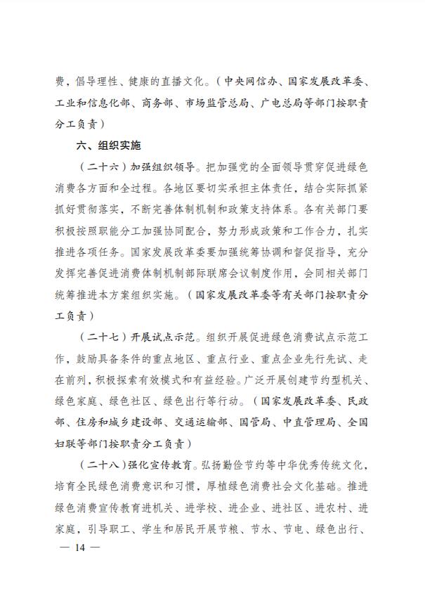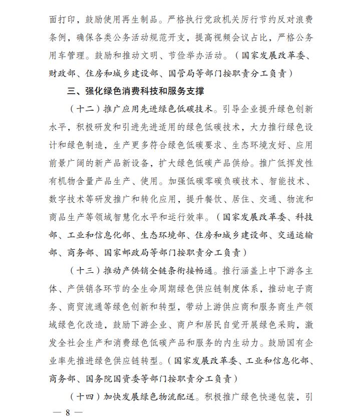 為深入貫徹落實《中共中央、國務(wù)院關(guān)于完整準(zhǔn)確全面貫徹新發(fā)展理念做好碳達峰碳中和工作的意見》和《2030年前碳達峰行動方案》有關(guān)要求,根據(jù)碳達峰碳中和工作領(lǐng)導(dǎo)小組部署安排,國家發(fā)展改革委、工業(yè)和信息化部、住房和城鄉(xiāng)建設(shè)部、商務(wù)部、市場監(jiān)管總局、國管局、中直管理局會同有關(guān)部門研究制定了《促進綠色消費實施方案》。現(xiàn)印發(fā)給你們,請結(jié)合實際,認真抓好貫徹落實。