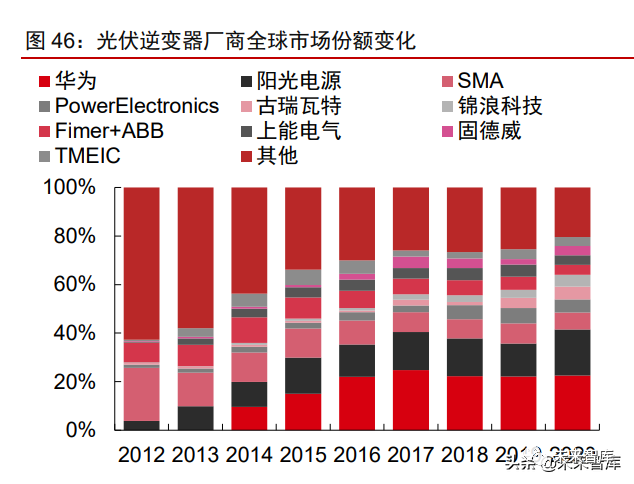 目前微逆市場以歐美戶用領(lǐng)域為主,市場有望加速推廣。應(yīng)用場景方面,微型逆變器 既可以應(yīng)用于住宅用戶場景,亦可應(yīng)用于小型工商業(yè)場景,但由于微型逆變器成本偏高而 在用戶體驗上面具有優(yōu)勢,因而在住宅用戶市場中更具優(yōu)勢。銷售區(qū)域方面,北美、歐洲 是當(dāng)前微型逆變器的前兩大市場,該兩大市場政策成熟、用戶付費能力強,當(dāng)前已經(jīng)形成 了具有梯隊的競爭格局,微型逆變器領(lǐng)域的主要廠商 Enphase 等公司在市場中占有較大 市場份額,而亞洲、中東、拉丁美洲作為微型逆變器市場中的重要增長力量,由于政策成 熟度相對較低,用戶付費能力較弱,因而成本上具有較明顯優(yōu)勢的國內(nèi)廠商在該等市場中 占有一定優(yōu)勢。