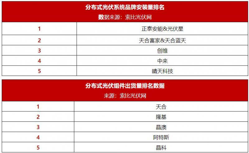 從索比光伏網(wǎng)了解的情況看,越來越多開發(fā)企業(yè)、安裝商傾向于選擇一線大品牌產(chǎn)品,或者與背靠大型制造企業(yè)的一線品牌合作,成為他們的區(qū)域代理商,馬太效應(yīng)愈加明顯。其中,在系統(tǒng)品牌方面,正泰安能、天合富家牢牢把持前兩把交椅,創(chuàng)維、中來、晴天也成功躋身分布式安裝量前五。在組件品牌方面,天合、隆基兩大品牌依然是最強(qiáng)王者,晶澳、阿特斯、晶科也保持了自己的龍頭地位。
