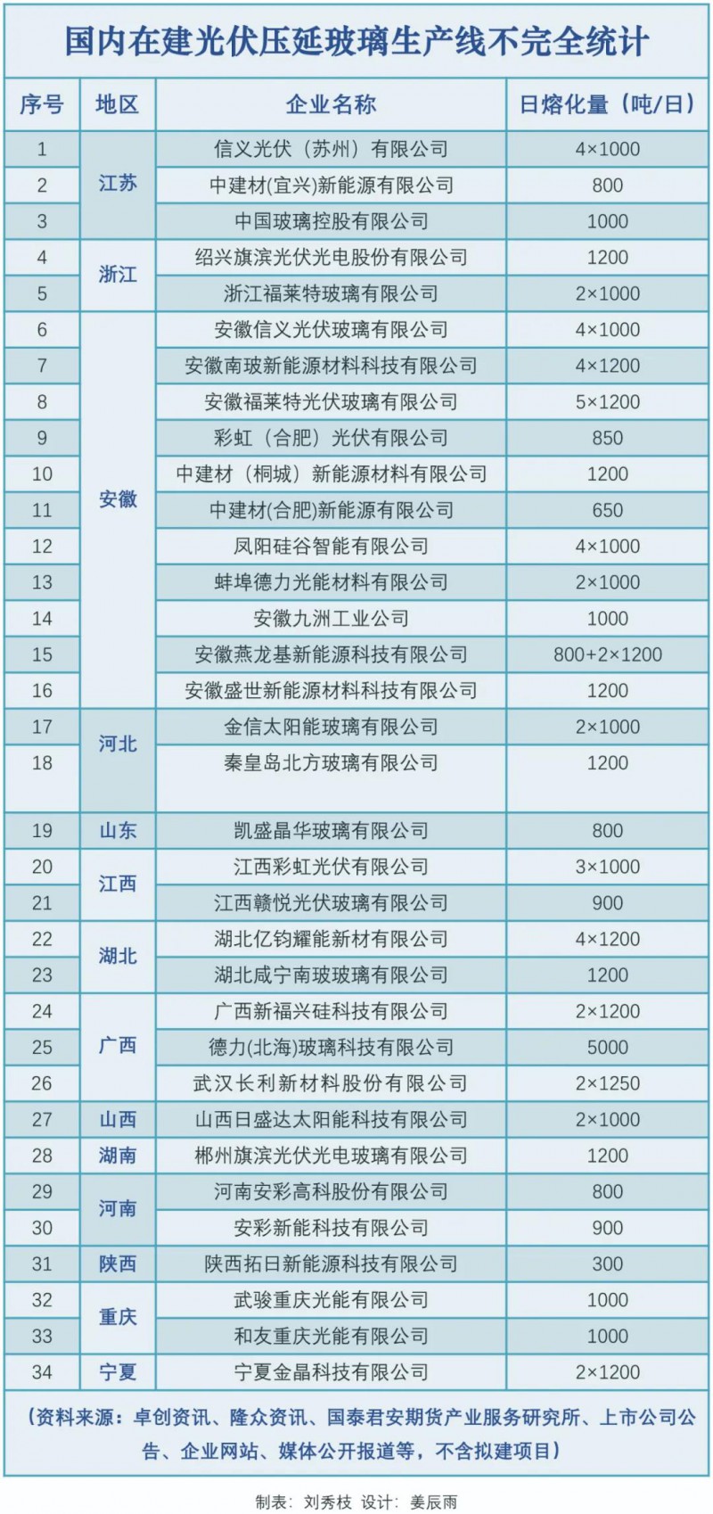 在江西,彩虹新能源規(guī)劃建設10座1000噸/日的光伏壓延玻璃生產(chǎn)線,3座已開工;在安徽和江蘇,信義光能各有4座1000噸/日的生產(chǎn)線正在建設;廣西北海正加快打造硅科技及光伏玻璃產(chǎn)業(yè)全產(chǎn)業(yè)鏈集群,云南曲靖提出要打造“世界光伏之都”……