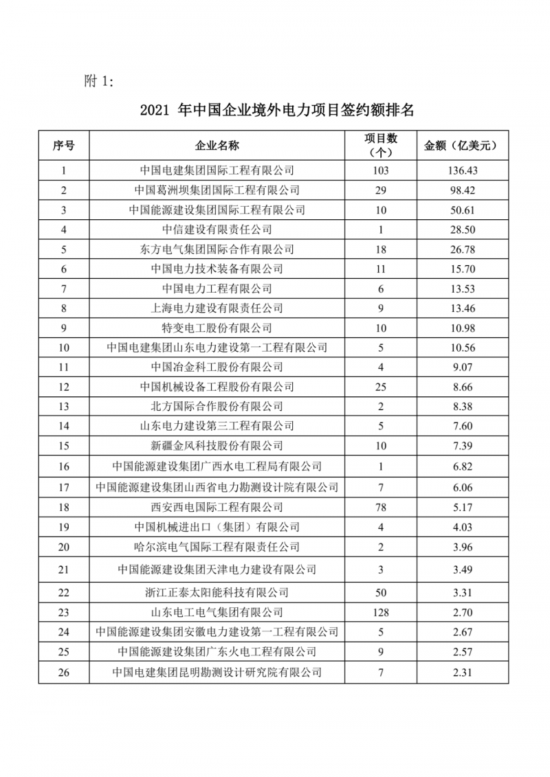 此外,2021年中國企業(yè)境外電力項目簽約額排名總榜依然是由上述企業(yè)引領。