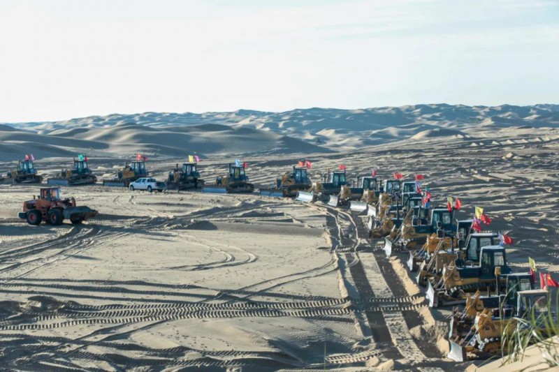▲2021年10月16日,內(nèi)蒙古蒙西基地庫布其200萬千瓦光伏治沙項目開工現(xiàn)場。