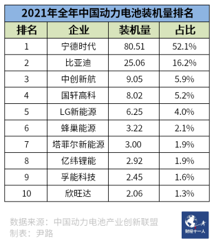 圖4: 2021年中國(guó)動(dòng)力電池裝機(jī)量排名