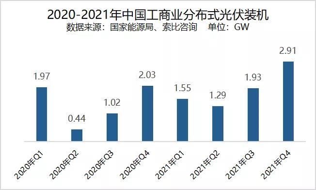 與此同時(shí),下半年以來,在中央“能耗雙控”政策、電價(jià)政策的共同推動(dòng)下,工商業(yè)分布式光伏也取得歷史最好成績,全年新增裝機(jī)7.68GW,其中四季度新增裝機(jī)近3GW。