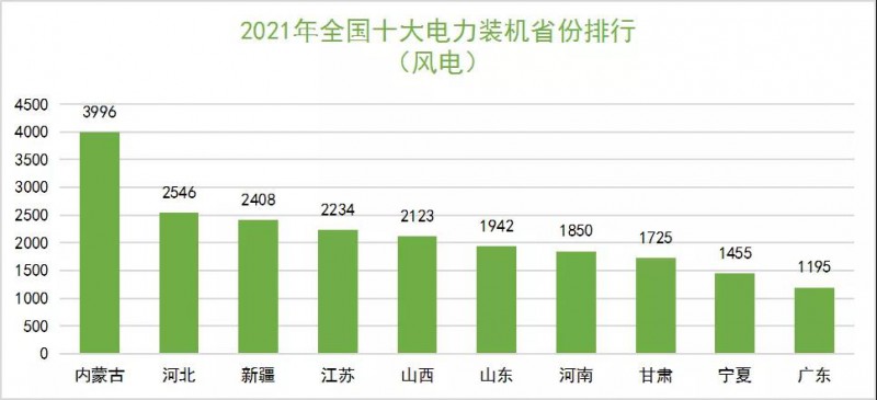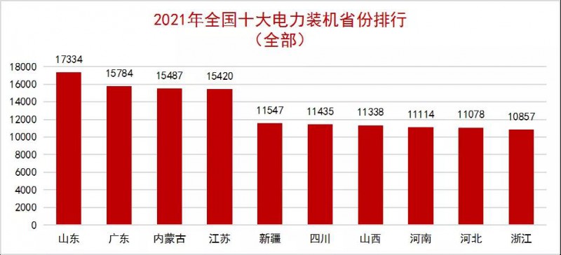 截至2021年底,全國發(fā)電裝機容量23.77億千瓦,包括:火電裝機容量13.0億千瓦,水電裝機容量3.9億千瓦,風電3.3億千瓦,太陽能發(fā)電裝機3.1億千瓦。全口徑非化石能源發(fā)電裝機容量11.2億千瓦。