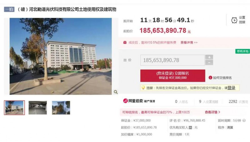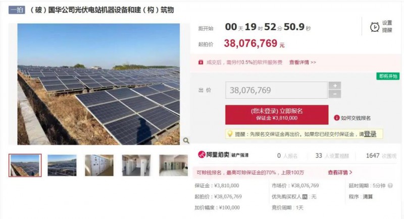 原標題:約2.24億元起拍價 一批光伏設(shè)備、土地使用權(quán)及建筑物即將拍賣