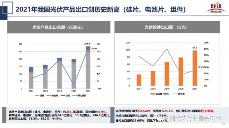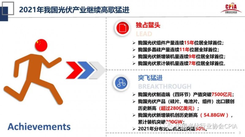 2022年2月23日,2021年發(fā)展回顧與2022年形勢(shì)展望線上研討會(huì)采用直播形式順利召開(kāi),中國(guó)光伏行業(yè)協(xié)會(huì)名譽(yù)理事長(zhǎng)王勃華出席會(huì)議并作2021年光伏行業(yè)發(fā)展回顧與2022年形勢(shì)展望,王勃華指出,2021年我國(guó)光伏行業(yè)繼續(xù)高歌猛進(jìn),制造端,應(yīng)用端,進(jìn)出口都取得了快速增長(zhǎng),2022年我國(guó)光伏市場(chǎng)在巨大的規(guī)模儲(chǔ)備下或?qū)⒃鲋?5GW以上。