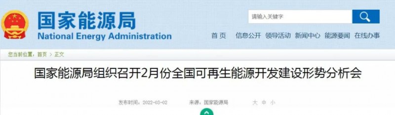 會議圍繞研究促進2022年風電光伏開發(fā)建設,聽取了上次月度形勢分析會意見建議落實情況及全國可再生能源電力發(fā)展情況匯報,與會單位反映了大型風電光伏基地項目并網(wǎng)和送出工程、林草地使用、項目核準、選址調(diào)整、項目整合等問題,并提出了相關建議。2022年風電光伏發(fā)展開局良好,1月份全國風電光伏新增裝機超過1200萬千瓦,風光電消納利用率保持在較高水平。