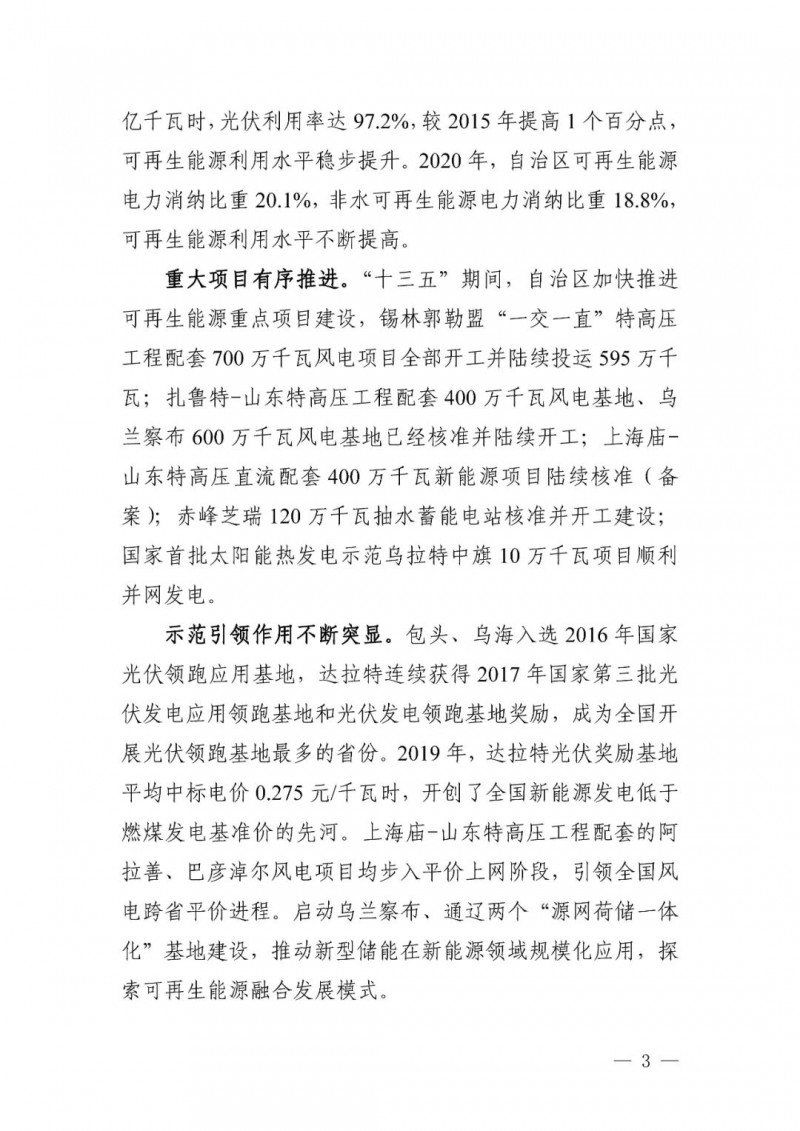 3月3日,內(nèi)蒙古自治區(qū)能源局網(wǎng)站公開發(fā)布了“內(nèi)蒙古自治區(qū)能源局關(guān)于印發(fā)《內(nèi)蒙古自治區(qū)“十四五”可再生能源發(fā)展規(guī)劃》的通知(內(nèi)能新能字〔2022〕103號(hào))”,根據(jù)規(guī)劃,“十四五”時(shí)期,我區(qū)可再生能源主要發(fā)展目標(biāo)如下: