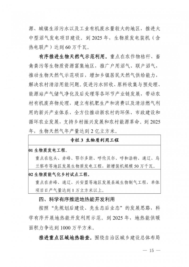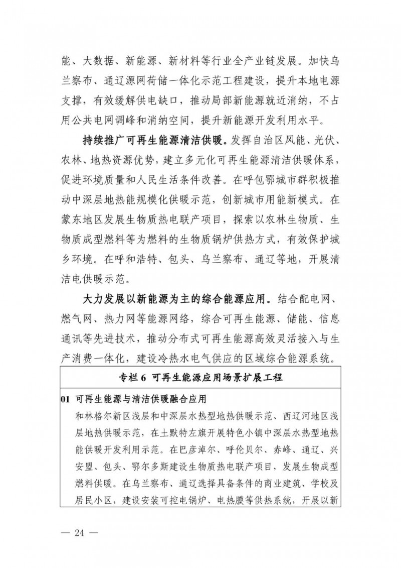 可再生能源供熱目標(biāo)。自治區(qū)地?zé)崮堋⑸镔|(zhì)能、 太陽能供暖和新能源電力供暖利用規(guī)模顯著提升。全區(qū)可再生能源供暖面積達(dá)到 3600 萬平方米,“十四五”期間新增2500 萬平方米。