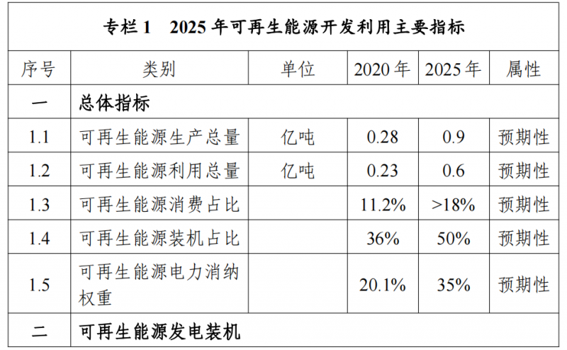“十四五”時期主要發(fā)展目標(biāo)如下:——可再生能源總量目標(biāo)。2025 年,自治區(qū)可再生能源供給能力顯著提高,可再生能源生產(chǎn)總量超過 9000 萬噸標(biāo)準(zhǔn)煤,可再生能源區(qū)內(nèi)利用量超過 6000 萬噸標(biāo)準(zhǔn)煤,占當(dāng)年一次能源消費總量的 18%以上,超過全國平均水平。——可再生能源發(fā)電目標(biāo)。自治區(qū)可再生能源發(fā)電裝機(jī)達(dá)到 1.35 億千瓦以上,其中風(fēng)電 8900 萬千瓦、光伏發(fā)電 4500 萬千瓦,新能源裝機(jī)規(guī)模超過燃煤火電裝機(jī)規(guī)模,新能源發(fā)電量占自治區(qū)總發(fā)電量比重超過 35%。“十四五”期間可再生能源新增裝機(jī) 8000 萬千瓦以上,占全部新增裝機(jī)的比重超過 60%,成為新增裝機(jī)的主力。——可再生能源并網(wǎng)運行目標(biāo)。全區(qū)可再生能源在更大 規(guī)模發(fā)展的情況下實現(xiàn)合理利用,平均利用率保持在 90%以上,可再生能源發(fā)電能力持續(xù)提升并領(lǐng)先全國。