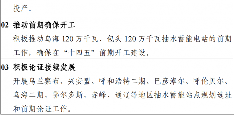 1)加快推進(jìn)赤峰芝瑞 120 萬千瓦抽水蓄能電站建設(shè),力爭早日建成投產(chǎn)。早日開工烏海 120 萬千瓦、包頭 120 萬千瓦抽水蓄能電站, 確保在“十四五”前期開工建設(shè)。2)力爭“十四五”期間新增并網(wǎng)太陽能熱發(fā)電項目 50 萬千瓦。3)原則上新建新能源項目要配置 15%(2 小時)以上的新型儲能設(shè)施4)“十四五” 期間,規(guī)劃新增新能源外送基地 2900 萬千瓦,力爭累計投產(chǎn) 3900 萬千瓦。力爭2025 年前推動開工配套新能源基地 1000 萬千瓦。具體如下。