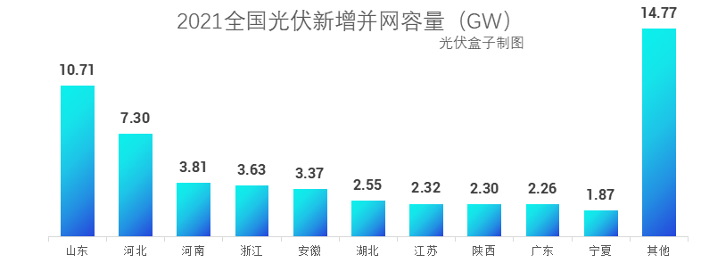 其中,2021新增裝機容量排名前3的省份分別是山東省(10.71GW)、河北省(7.3GW)、河南省(3.81GW)。
