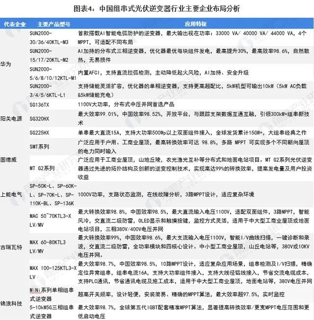 近幾年,國內(nèi)光伏逆變器行業(yè)新進(jìn)入企業(yè)大多數(shù)是以組串式光伏逆變器產(chǎn)品為布局重點(diǎn),而傳統(tǒng)的集中式逆變器廠商也陸續(xù)推出了各類組串式產(chǎn)品,組串式光伏逆變器市場的企業(yè)競爭逐漸激烈。其中,以華為與陽光電源為代表的企業(yè)主打組串式逆變器產(chǎn)品,兩者也占據(jù)了整個光伏逆變器行業(yè)的主導(dǎo)地位。