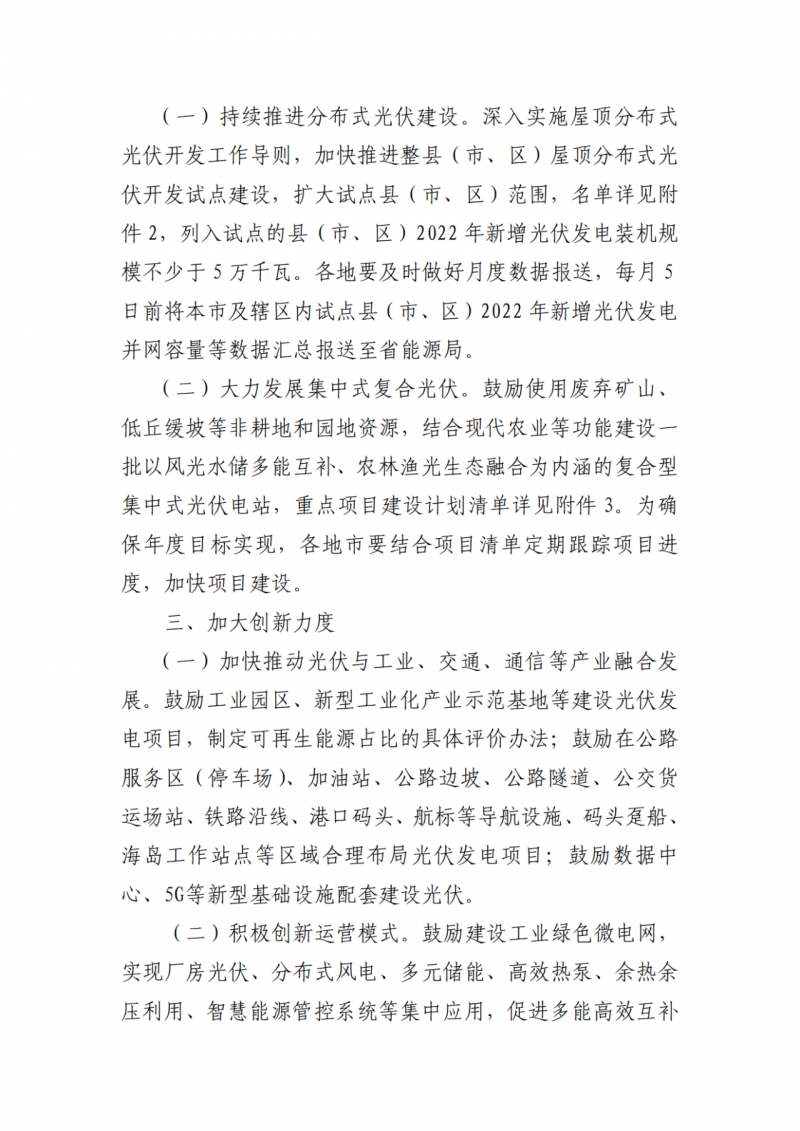 除此外,浙江省能源局要求持續(xù)加快分布式光伏建設,并擴大整縣(市、區(qū))屋頂分布式光伏開發(fā)試點建設范圍,新增36個整縣試點名單,列入試點名單縣(市、區(qū))2022年光伏新增不得少于50MW,總規(guī)模為1.8GW。