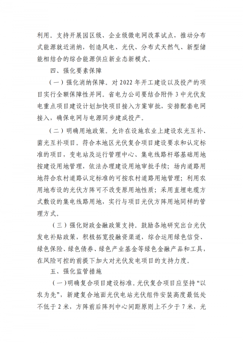 在具體保障措施方面,要求對2022年開工建設以及投產(chǎn)的項目實行全額保障性并網(wǎng),安排配套電網(wǎng)接入,確保電網(wǎng)與電源同步建成投產(chǎn)。規(guī)范開發(fā)秩序,不得將配套產(chǎn)業(yè)等作為項目備案和開發(fā)建設的門檻。
