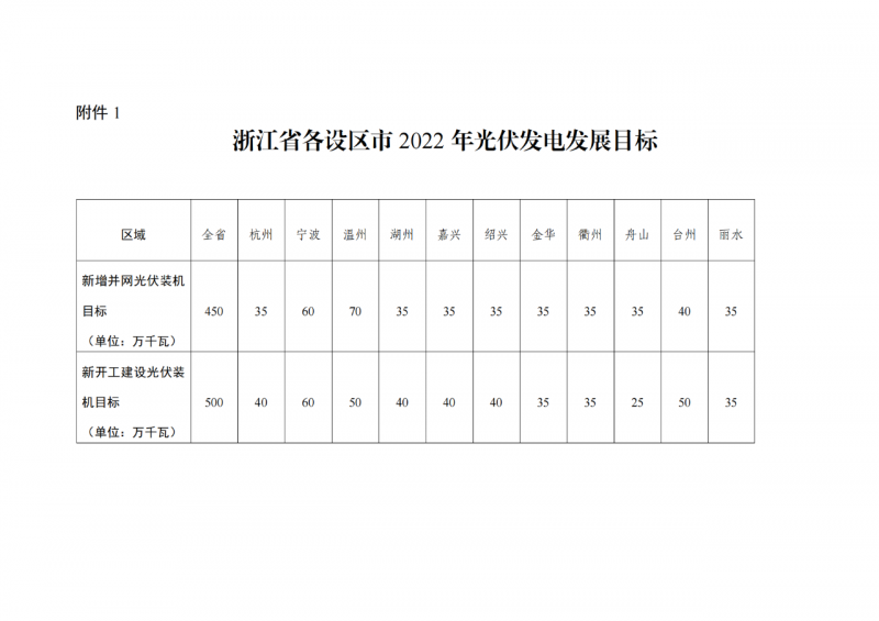 3月21日,浙江省能源局下發(fā)《關(guān)于2022年光伏發(fā)電項目建設有關(guān)事項的通知》,規(guī)劃2022年全省光伏建設目標為并網(wǎng)4.5GW,開工5GW,并對各市的光伏發(fā)電發(fā)展目標進行了分解。