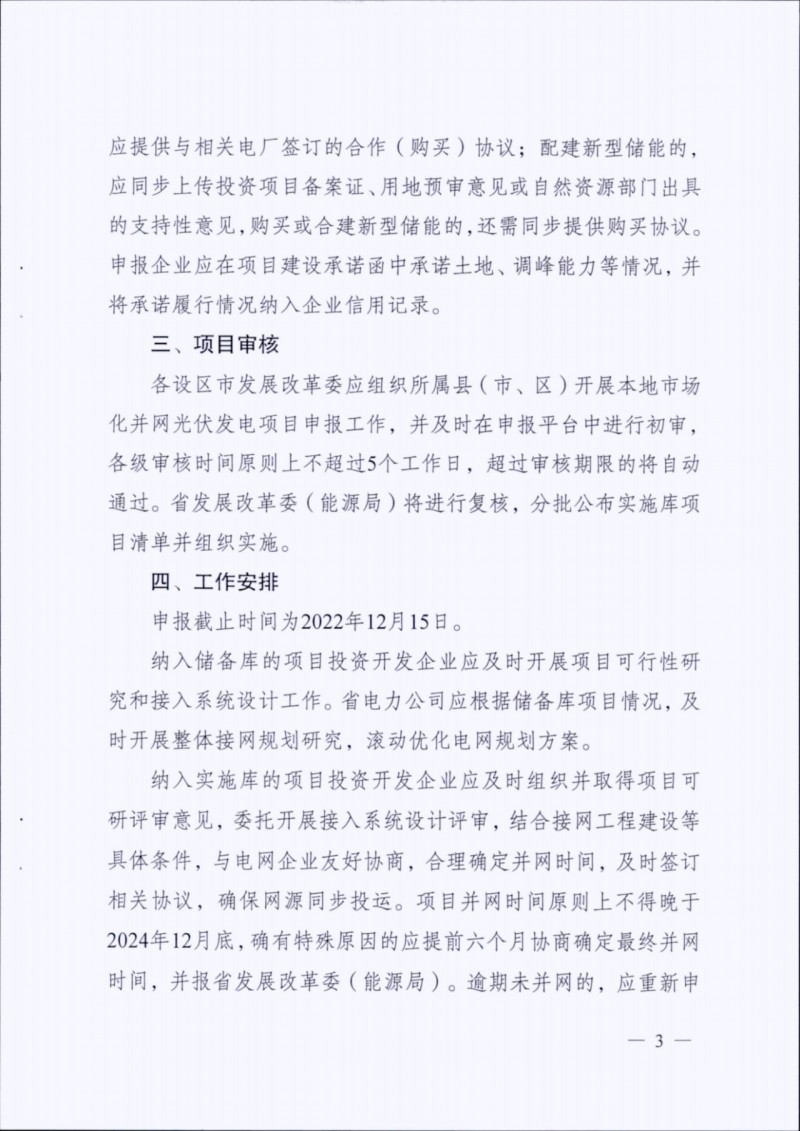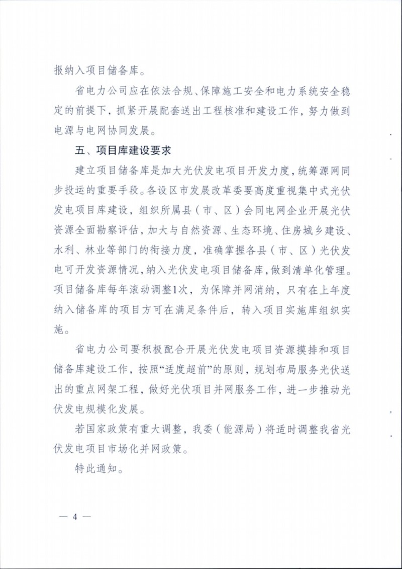 儲備庫項(xiàng)目要及時開展可行性研究和接入系統(tǒng)設(shè)計(jì)工作,省電力公司要根據(jù)儲備庫項(xiàng)目及時開展整體接網(wǎng)規(guī)劃和研究。實(shí)施項(xiàng)目要合理確定并網(wǎng)時間,最晚在2024年12月底并網(wǎng),如有特殊情況可申請延遲半年。省電力公司要按照"適度超前”的原則,規(guī)劃布局服務(wù)光伏送出的重點(diǎn)網(wǎng)架工程。