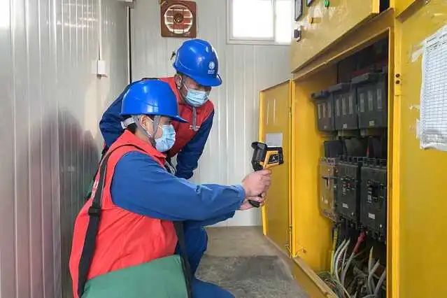 國網(wǎng)石家莊市鹿泉區(qū)供電公司黨員服務(wù)隊(duì)到千億級產(chǎn)業(yè)園區(qū)海康威視項(xiàng)目建設(shè)工地幫助檢查用電設(shè)備。張靜攝