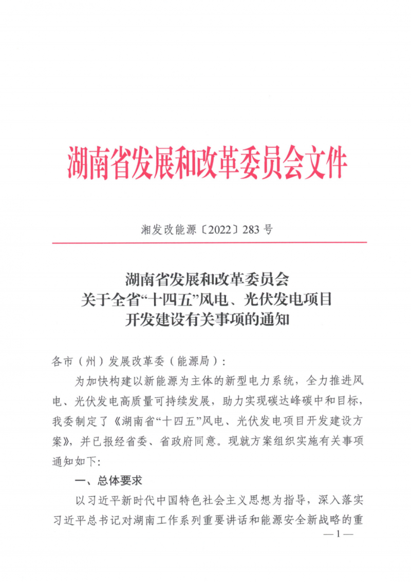 4月14日,湖南發(fā)改委印發(fā)《關(guān)于全省“十四五”風(fēng)電、光伏發(fā)電項(xiàng)目開發(fā)建設(shè)有關(guān)事項(xiàng)的通知》,力爭做到在“十四五”期間具備開發(fā)建設(shè)條件的風(fēng)電、集中式光伏發(fā)電項(xiàng)目應(yīng)開盡開。