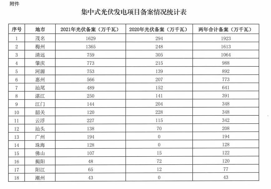 4.鼓勵競爭性配置資源:考慮到茂名、梅州、清遠(yuǎn)等3市備案規(guī)模均已超過1000萬千瓦,肇慶、河源、惠州、汕尾等4市備案規(guī)模均已超過600萬千瓦,遠(yuǎn)超當(dāng)?shù)叵{空間,請上述7市進(jìn)一步加強對光伏備案工作的指導(dǎo)。
