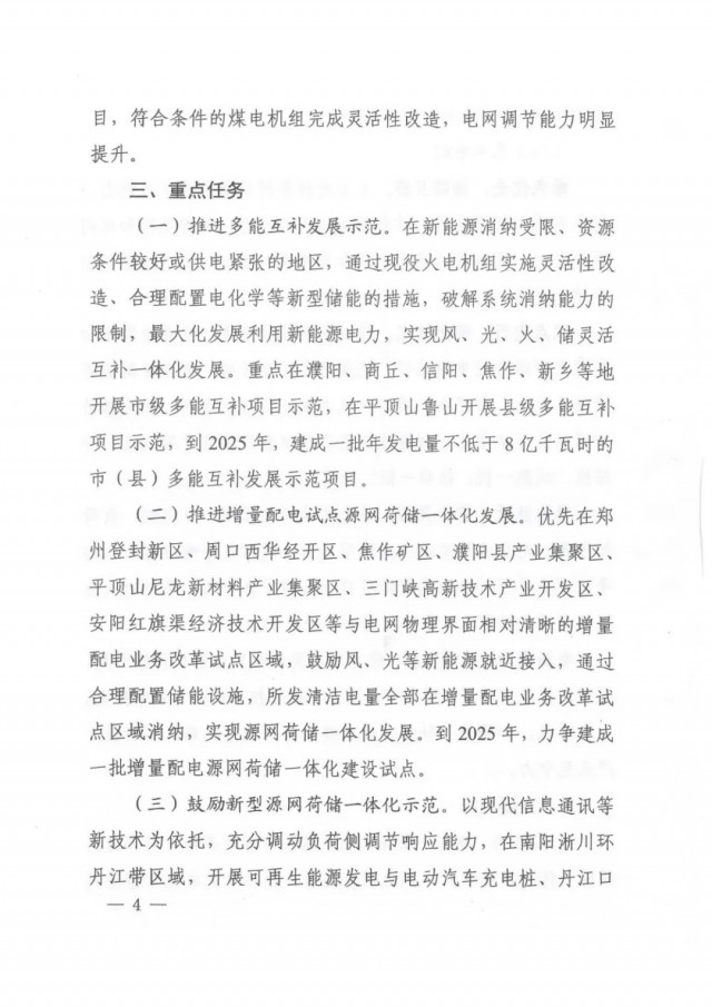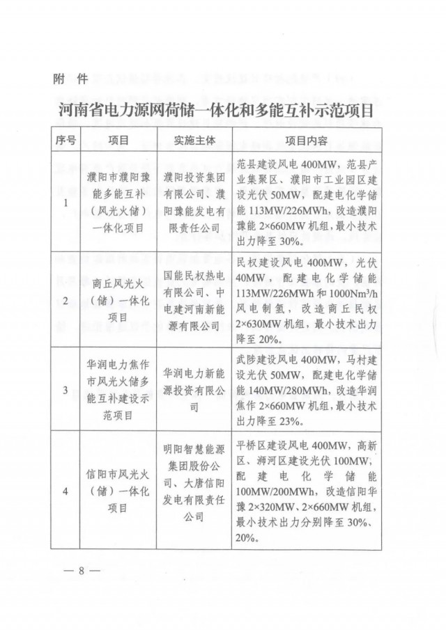 要重點推進多能互補發(fā)展示范,最大化發(fā)展利用新能源電力,實現(xiàn)風、光、火、儲靈活互補一體化發(fā)展。重點在濮陽、商丘、信陽、焦作、新鄉(xiāng)等地開展市級多能互補項目示范,在平頂山魯山開展縣級多能互補項目示范,到2025年,建成一批年發(fā)電量不低于8億千瓦時的市(縣)多能互補發(fā)展示范項目。