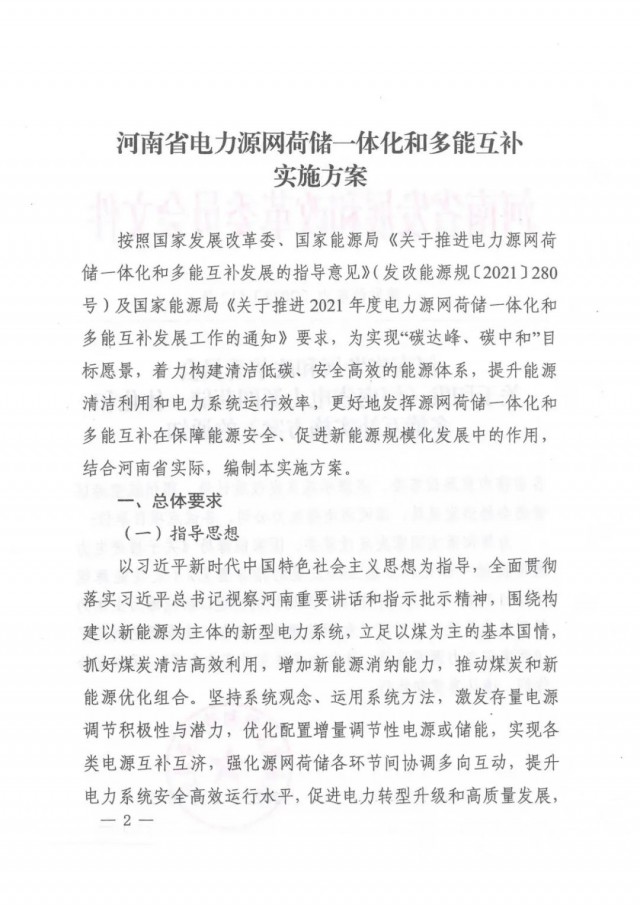 6月16日,河南省發(fā)改委印發(fā)《河南省電力源網(wǎng)荷儲一體化和多能互補實施方案》的通知,文件指出,要按照綠色優(yōu)先、協(xié)調互濟,試點先行、突出重點,就地就近、安全靈活,市場驅動、政策支持的基本原則,重點在新能源消納壓力大、資源條件較好和電力供應緊張的地區(qū)開展項目試點,按照“成熟一批、推動一批"的模式分步推廣實施。到2025年,建成一批高比例消納新能源的多能互補和源網(wǎng)荷儲一體化示范項目。