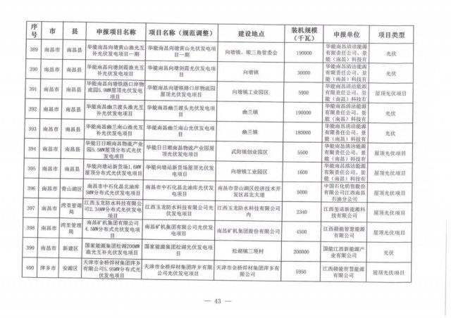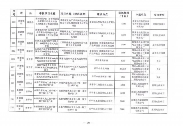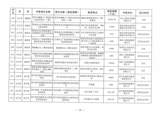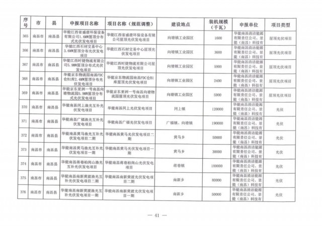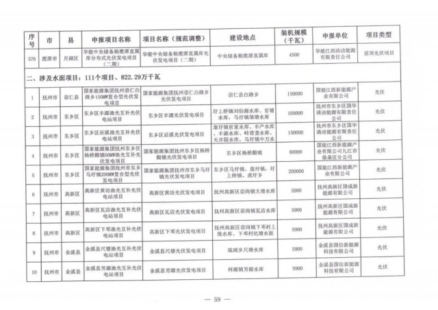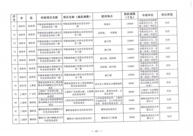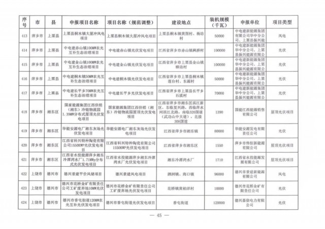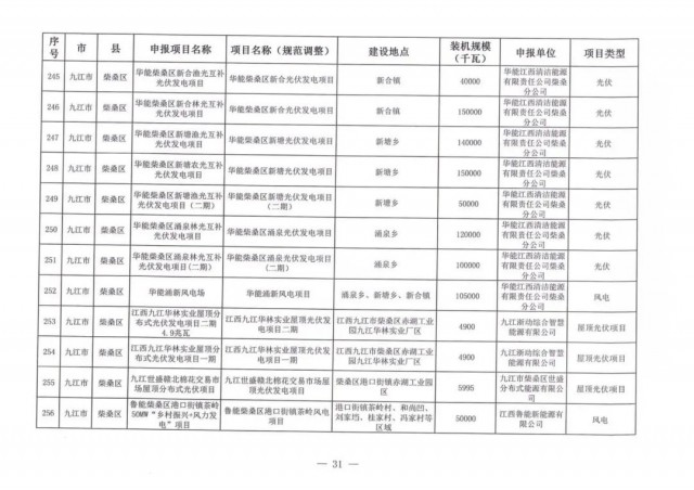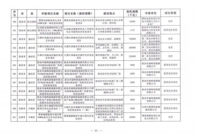 本次江西調(diào)整的納規(guī)風(fēng)光項目總規(guī)模為41.816GW,光伏規(guī)模33.06GW,風(fēng)電規(guī)模為8.754GW,總計687個項目。其中,光伏又分為集中式、分布式和水面光伏,規(guī)模分別為23.885GW、0.955GW、8.22GW。