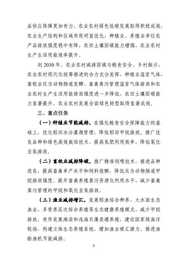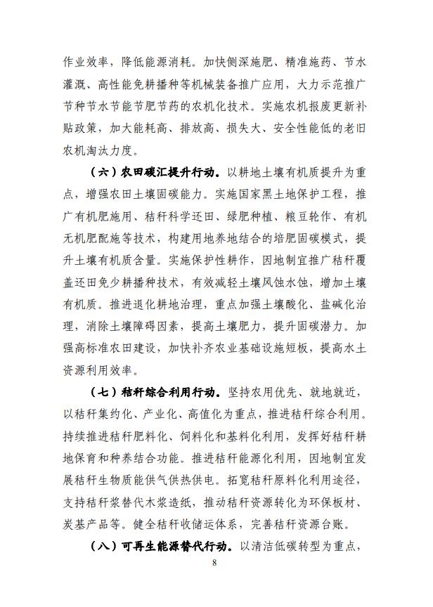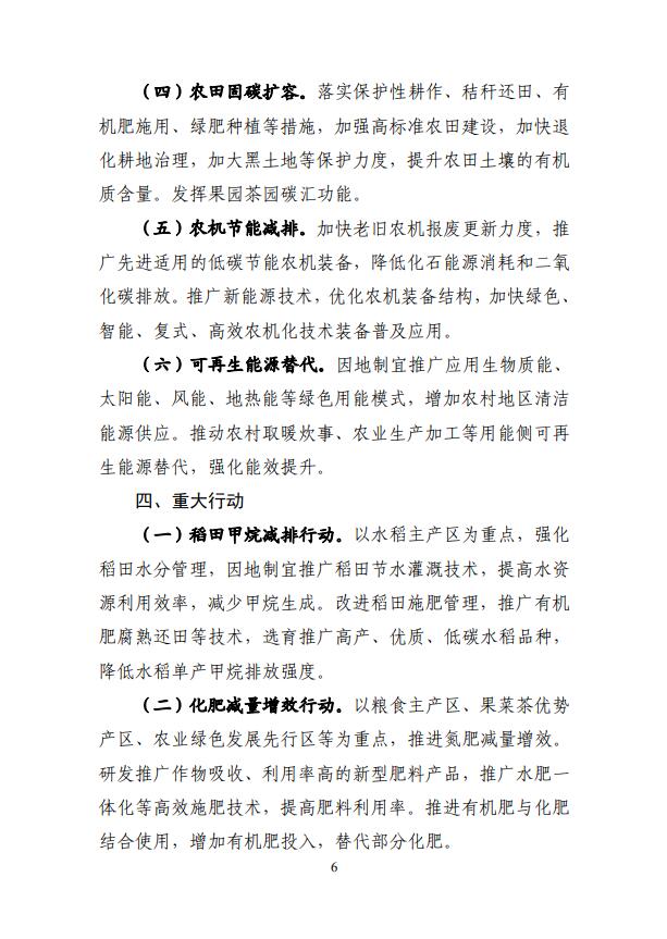 6月30日,農(nóng)業(yè)農(nóng)村部國家發(fā)展改革委發(fā)布了《農(nóng)業(yè)農(nóng)村減排固碳實施方案》,為貫徹落實碳達峰碳中和重大決策部署,推進農(nóng)業(yè)農(nóng)村綠色低碳發(fā)展,農(nóng)業(yè)農(nóng)村部、國家發(fā)改委制定了《農(nóng)業(yè)農(nóng)村減排固碳實施方案》,方案指出6大任務(wù),10大行動。