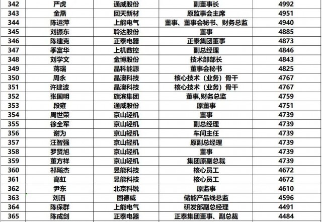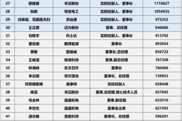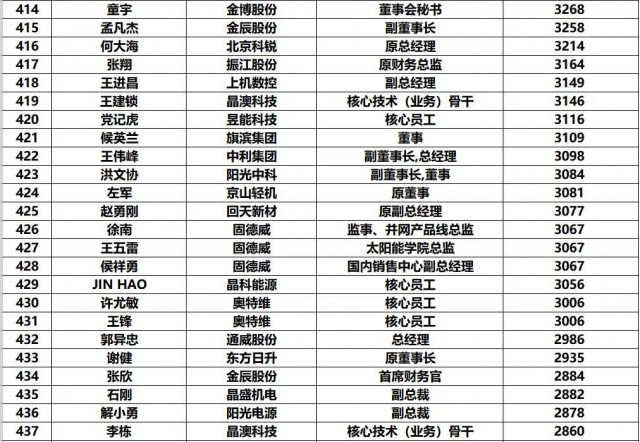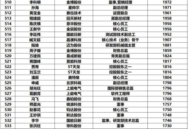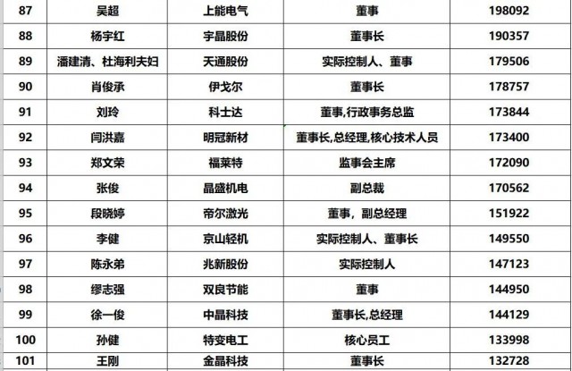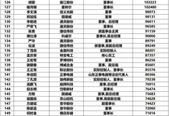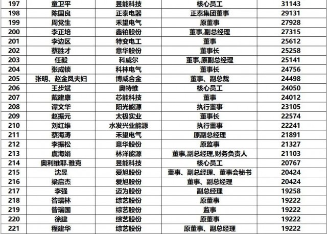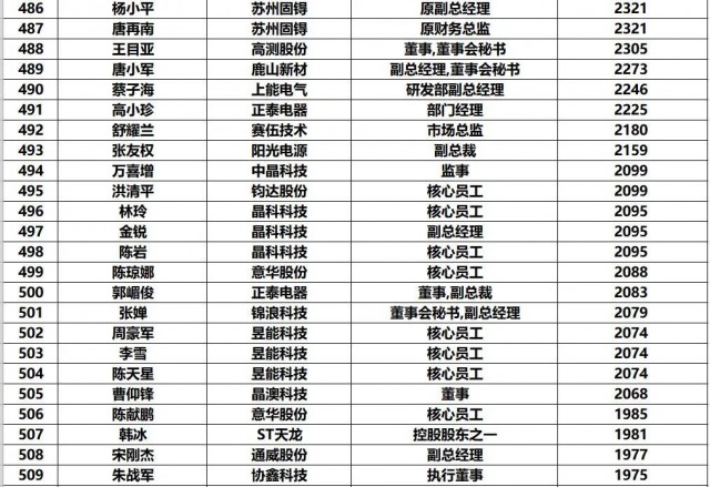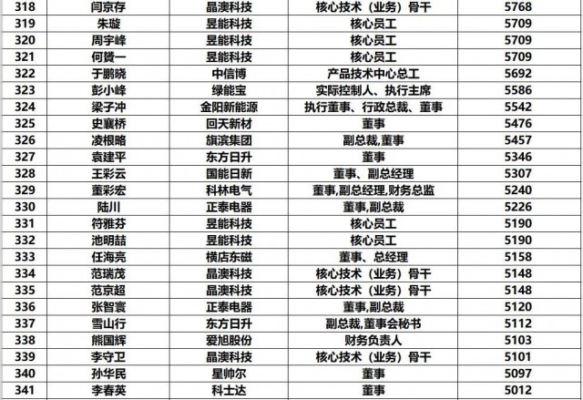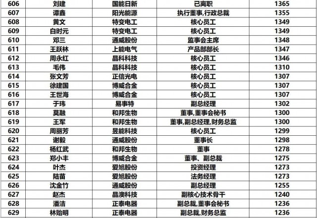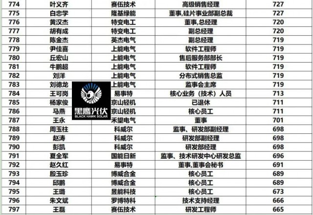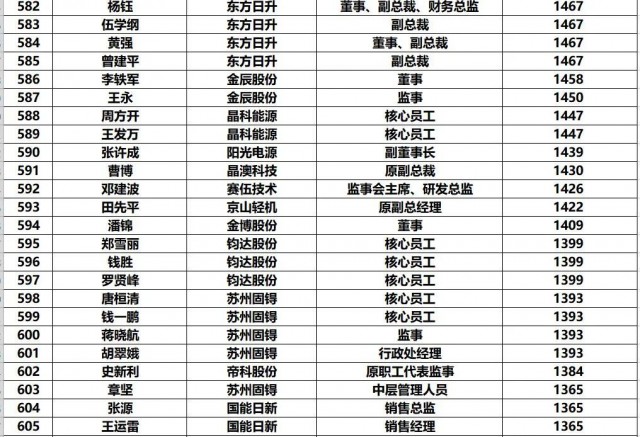 黑鷹團(tuán)隊(duì)制作此次榜單的方法:第一,此次統(tǒng)計(jì)的財(cái)富榜,是以光伏上市公司實(shí)時(shí)披露的前十大股東和高管持股數(shù)據(jù)為基礎(chǔ),乘以2022年7月4日企業(yè)收盤(pán)價(jià)計(jì)算得出,并不包含相應(yīng)上市企業(yè)股票價(jià)值(通常這也是相關(guān)人的核心財(cái)富)以外的財(cái)富。第二,《2022年中國(guó)光伏富豪榜TOP1000》涵蓋光伏企業(yè)實(shí)際控制人、現(xiàn)任公司高管/原高管、集團(tuán)公司高管等核心光伏從業(yè)人員,其他諸如財(cái)務(wù)投資者、或者二級(jí)市場(chǎng)投資者未計(jì)算在內(nèi)。第三,黑鷹團(tuán)隊(duì)實(shí)際統(tǒng)計(jì)到的人數(shù)近1500人,最終擇取了前1000人。