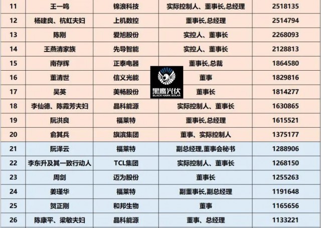 黑鷹光伏團(tuán)隊(duì)推出《2022年中國(guó)光伏富豪榜TOP1000》榜單。