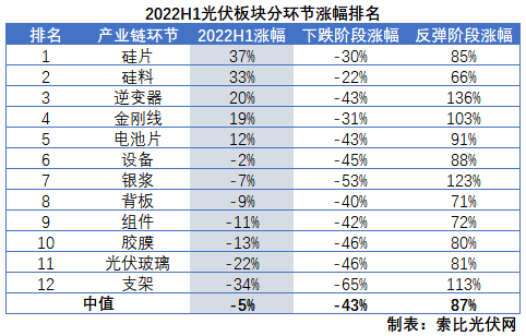 硅料、硅片半年漲幅居前,逆變器成上行階段最強(qiáng)主線