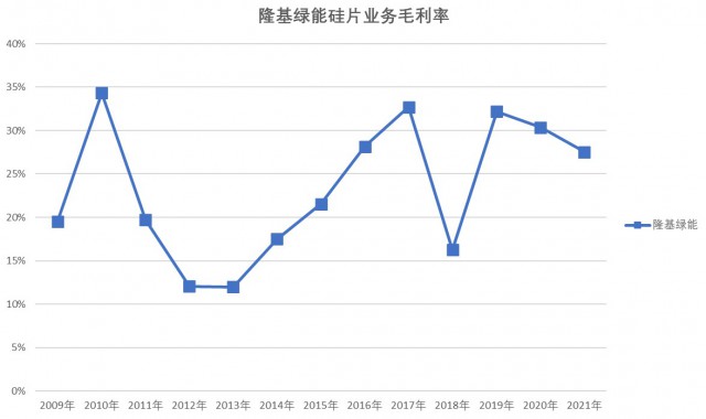 近些年來,盈利能力穩(wěn)定的硅片環(huán)節(jié)被認為具有一定的競爭壁壘,而電池片環(huán)節(jié)則給人以相對弱勢的感覺。不過,參考隆基綠能硅片業(yè)務(wù)毛利率變化,其實硅片環(huán)節(jié)亦有顯著的周期性特征,強勢地位并非堅不可摧。