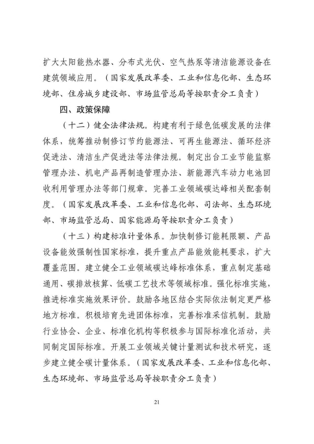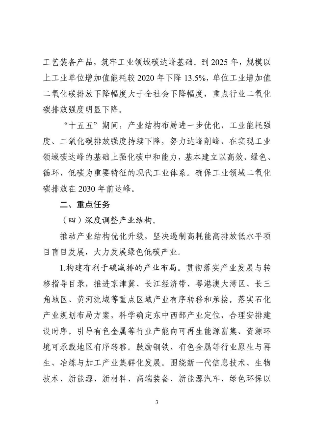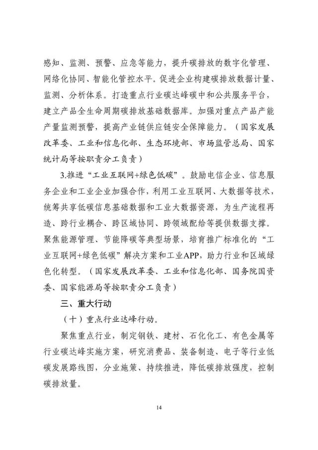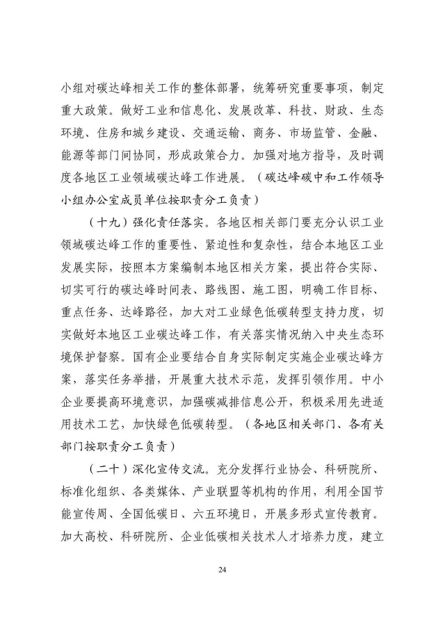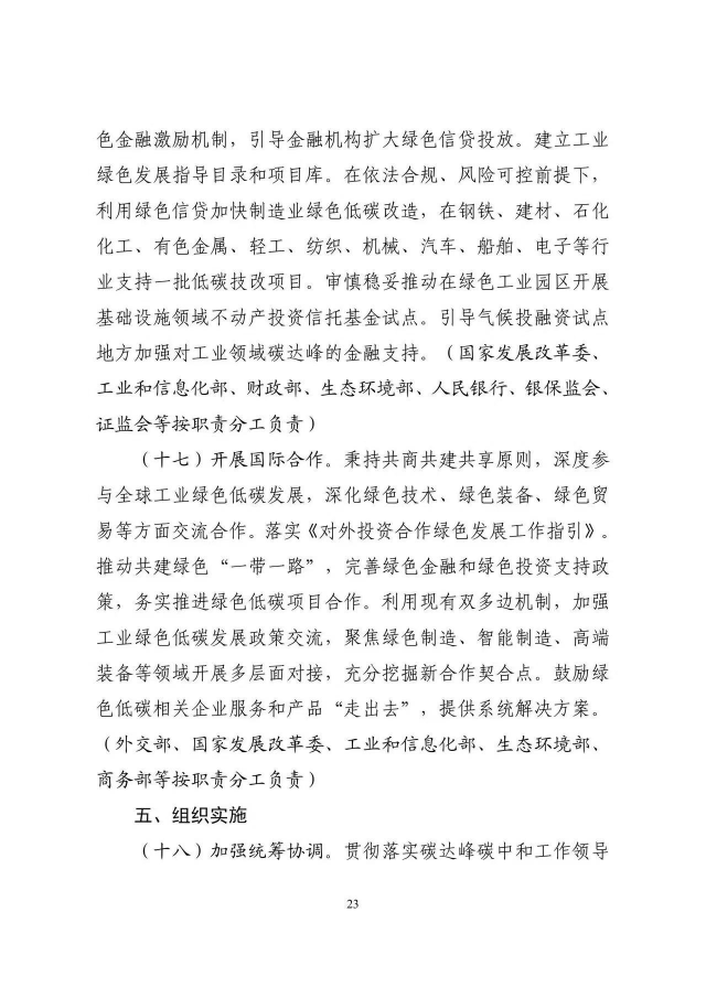 《工業(yè)領(lǐng)域碳達峰實施方案》已經(jīng)碳達峰碳中和工作領(lǐng)導(dǎo)小組審議通過,現(xiàn)印發(fā)給你們,請認真貫徹落實。