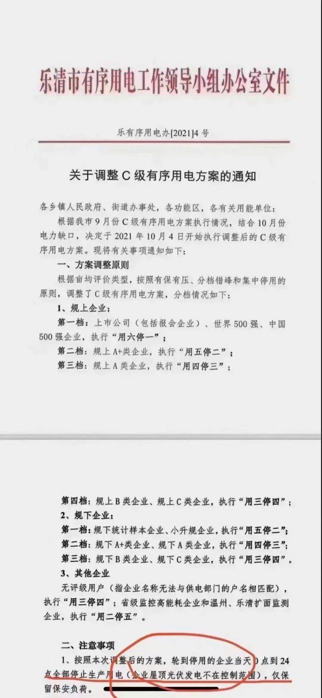 事實上,去年8、9月份就曾因煤電供應緊張下的電力缺口和“能耗雙控”政策導致多地出臺了限電措施,盡管本輪限電與去年的限電背景不同,但最終帶來的結(jié)果是一致的,即停產(chǎn)停工,而安裝了分布式光伏的工廠則具有一定“豁免權”。