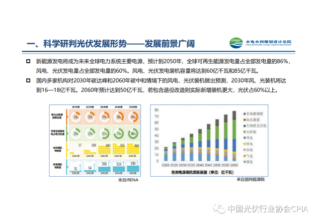 2022年7月21日,由中國(guó)光伏行業(yè)協(xié)會(huì)主辦的“光伏行業(yè)2022年上半年發(fā)展回顧與下半年形勢(shì)展望研討會(huì)”通過(guò)網(wǎng)絡(luò)直播形式順利召開(kāi)。水電水利規(guī)劃設(shè)計(jì)總院新能源部副主任王躍峰作光伏發(fā)電特性和消納利用模式研究報(bào)告。王主任表示,站在當(dāng)前現(xiàn)在新能源發(fā)展的關(guān)鍵節(jié)點(diǎn),必須科學(xué)研判光伏的發(fā)展形勢(shì),正確認(rèn)識(shí)光伏的發(fā)電特性,才能更高效提升光伏發(fā)電利用水平。