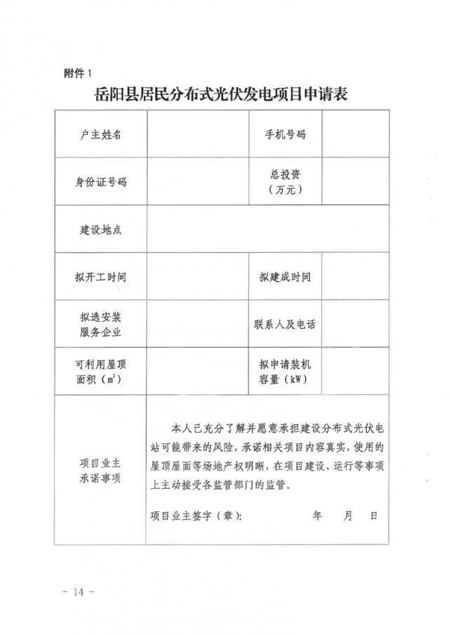 (一)《岳陽(yáng)縣居民分布式光伏發(fā)電項(xiàng)目申請(qǐng)表》