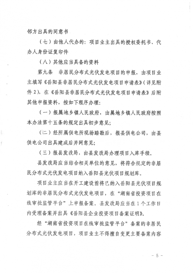 8月17日,湖南省岳陽(yáng)市岳陽(yáng)縣人民政府印發(fā)《岳陽(yáng)縣分布式光伏發(fā)電項(xiàng)目管理暫行辦法》,文件對(duì)居民分布式光伏發(fā)電項(xiàng)目、非居民分布式光伏發(fā)電項(xiàng)目申報(bào)資料予以明確。