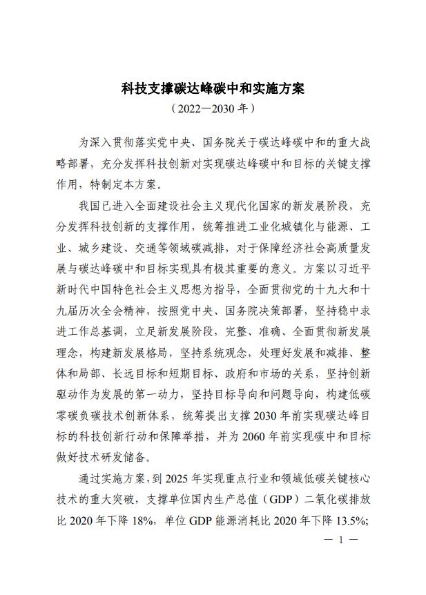 8月18日,科技部、國(guó)家發(fā)改委、工信部、生態(tài)環(huán)境部、住建部、交通部、中科院、工程院、國(guó)家能源局等九部門(mén)聯(lián)合印發(fā)《科技支撐碳達(dá)峰碳中和實(shí)施方案(2022—2030年)》。