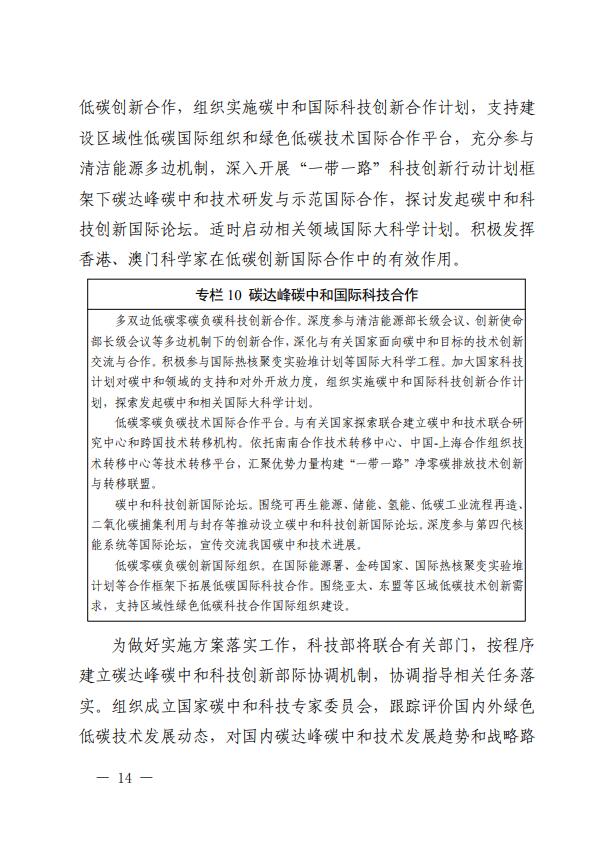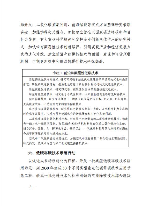 方案就加強(qiáng)科技支撐碳達(dá)峰碳中和涉及基礎(chǔ)研究、技術(shù)研發(fā)、應(yīng)用示范、成果推廣、人才培養(yǎng)、國(guó)際合作等多個(gè)方面提出了10項(xiàng)具體行動(dòng),到2030年,大幅提升能源技術(shù)自主創(chuàng)新能力,帶動(dòng)化石能源有序替代,推動(dòng)能源綠色低碳安全高效轉(zhuǎn)型。