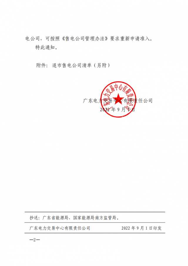 廣東電力交易中心今日發(fā)布通知,對(duì)266家售電公司實(shí)施強(qiáng)制退市,從電力市場(chǎng)主體目錄中刪除,并注銷其電力交易平臺(tái)賬號(hào)。