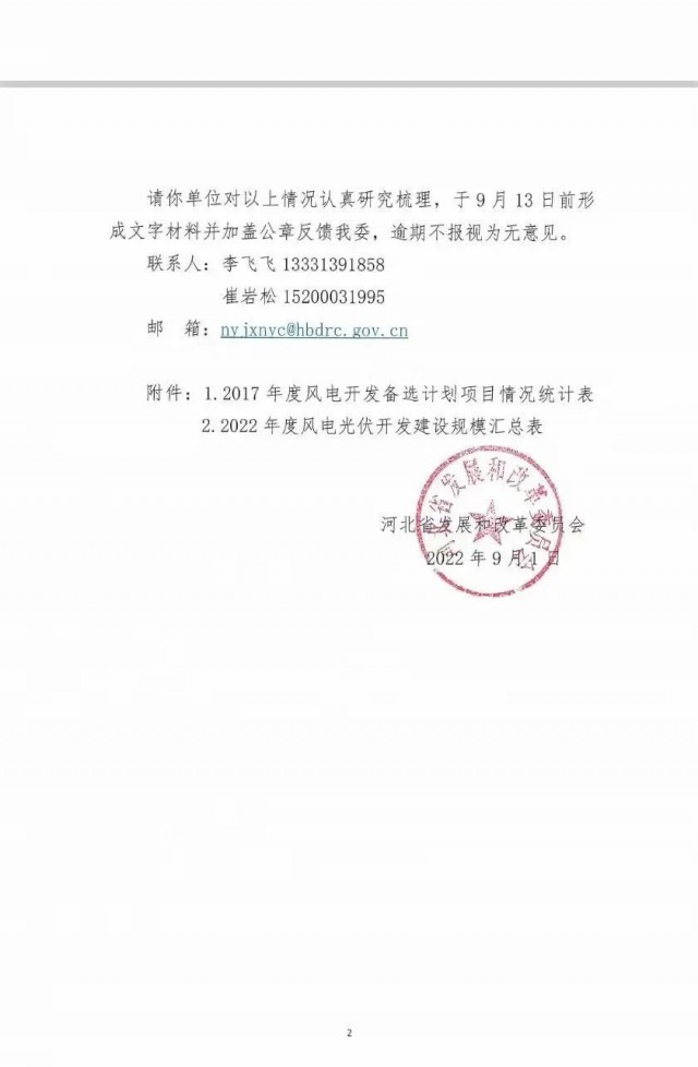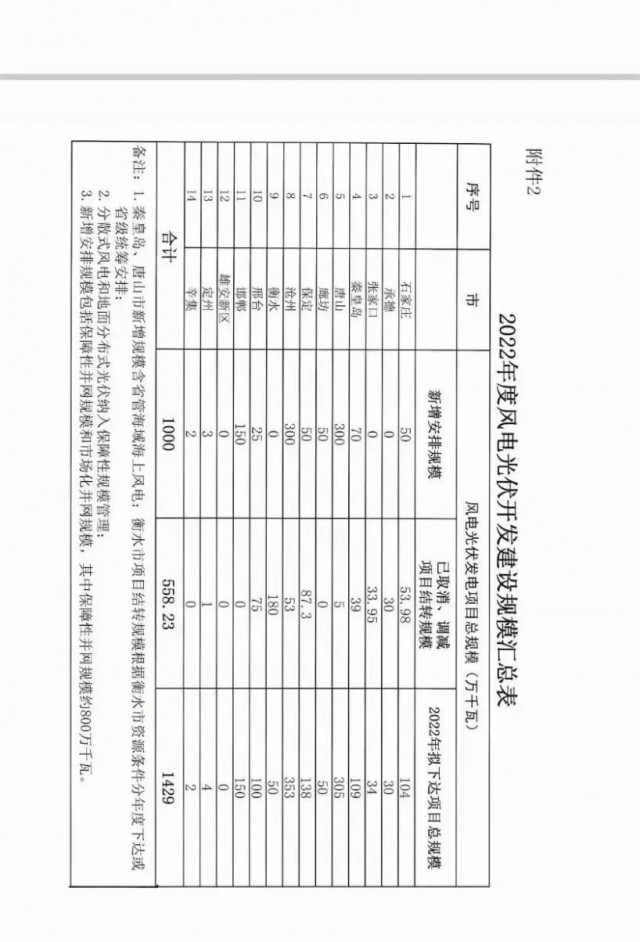 9月1日,河北省發(fā)改委發(fā)布了《關(guān)于征求風(fēng)電光伏項(xiàng)目開(kāi)發(fā)建設(shè)意見(jiàn)建議的函》,并公示了 2022年度風(fēng)電、光伏開(kāi)發(fā)建設(shè)規(guī)模匯總表。
