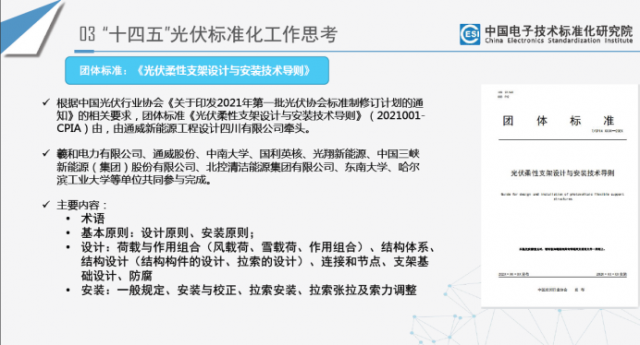 對(duì)于柔性支架相關(guān)的標(biāo)準(zhǔn)制定工作,裴會(huì)川秘書長(zhǎng)指出,目前有團(tuán)體標(biāo)準(zhǔn)《光伏柔性支架設(shè)計(jì)與安裝技術(shù)導(dǎo)則》(2021001- CPIA)正在評(píng)審中,我們將有序推進(jìn)相關(guān)柔性支架標(biāo)準(zhǔn)制定工作,為行業(yè)技術(shù)發(fā)展把好關(guān)。
