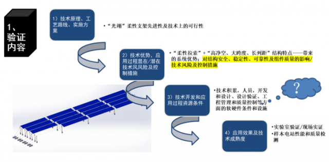 本次柔性支架驗(yàn)證采用技術(shù)評(píng)審和樣本電站檢測(cè)評(píng)估模式,驗(yàn)證內(nèi)容詳見下圖。