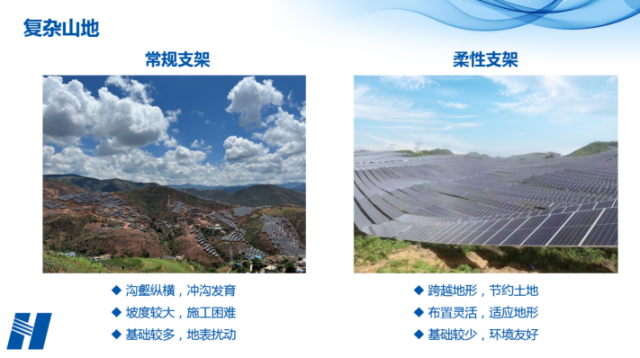 華能清能院蔣河川博士在題為《關(guān)于光伏柔性支架產(chǎn)業(yè)發(fā)展的思考》報(bào)告中介紹了光伏產(chǎn)業(yè)發(fā)展政策和趨勢(shì)、光伏柔性支架及場(chǎng)景需求分析、華能光伏柔性支架應(yīng)用與研究、技術(shù)分析與展望等方面內(nèi)容。他提到,柔性支架具備“大跨度、高凈空、低成本、環(huán)境友好”等特點(diǎn)。通過不同地形條件下固定支架和柔性支架的建設(shè)對(duì)比發(fā)現(xiàn):柔性支架可以跨越地形,節(jié)約土地;布置靈活,適應(yīng)地形;基礎(chǔ)較少,環(huán)境友好。蔣河川博士總結(jié)了華能集團(tuán)在貴州望謨、鎮(zhèn)寧,青海塔拉灘等項(xiàng)目上光伏柔性支架應(yīng)用情況。他指出,柔性支架的應(yīng)用提高了土地的利用率,達(dá)到了降本增效的效果,并表示柔性支架在復(fù)雜山地、農(nóng)牧光綜合項(xiàng)目、漁光綜合項(xiàng)目、茶光綜合項(xiàng)目、分布式光伏、沙戈荒大基地、近海灘涂光伏、礦區(qū)治理等領(lǐng)域應(yīng)用具備市場(chǎng)潛力。華能清能院作為華能的新能源技術(shù)研發(fā)中心,聚焦柔性支架的設(shè)計(jì)優(yōu)化、可靠性驗(yàn)證、運(yùn)維監(jiān)測(cè)等技術(shù)研究,并致力于技術(shù)的標(biāo)準(zhǔn)化和規(guī)范化,以推動(dòng)行業(yè)的發(fā)展。
