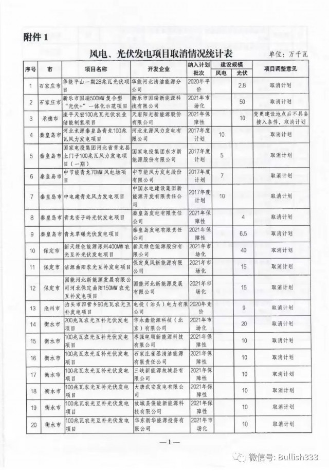 9月16日,河北發(fā)改委正式印發(fā)《關(guān)于公布風(fēng)電、光伏發(fā)電項(xiàng)目調(diào)整意見(jiàn)的通知》,對(duì)受用地政策調(diào)整、疫情等因素影響無(wú)法繼續(xù)實(shí)施或按期并網(wǎng)的項(xiàng)目進(jìn)行了調(diào)整。