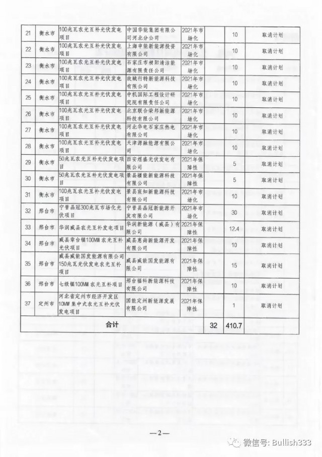 根據(jù)文件來(lái)看,相比此前發(fā)布的《風(fēng)電、光伏發(fā)電項(xiàng)目擬調(diào)整情況公示》來(lái)看,光伏新增取消三個(gè)2021年光伏保障性項(xiàng)目指標(biāo),規(guī)??傆?jì)為350MW,風(fēng)電則未發(fā)生變化。需要注意的是,三個(gè)光伏項(xiàng)目均為農(nóng)光互補(bǔ)類(lèi)項(xiàng)目,其業(yè)主分別為惠尚新能源開(kāi)發(fā)、威縣威能?chē)?guó)發(fā)能源以及中國(guó)電建。