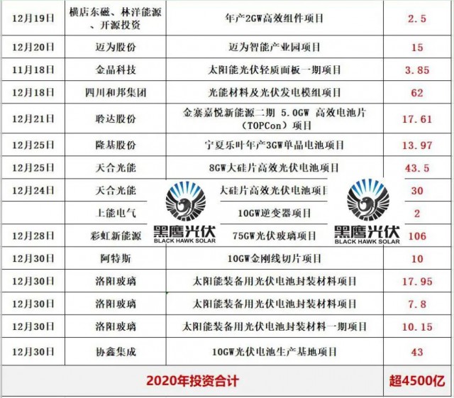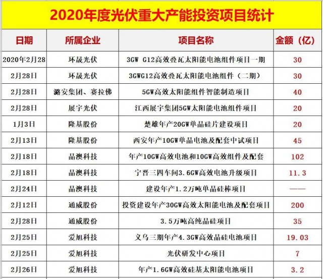四.2020光伏新項(xiàng)目投資超4000億!單個(gè)項(xiàng)目投資額在10億元以上的就多達(dá)82個(gè),50億元以上的有22個(gè)。