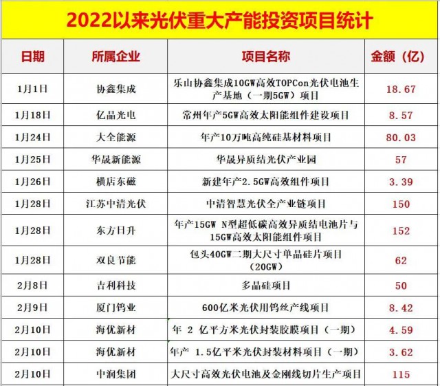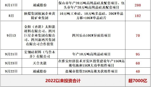 二.2022以來,光伏產(chǎn)能投資已超過7000億,特別是龍頭企業(yè)動(dòng)輒百億的投資(公告)頻頻出現(xiàn),跨界者持續(xù)涌入,產(chǎn)能投資還在提速,階段性絕對過剩風(fēng)險(xiǎn)加劇。