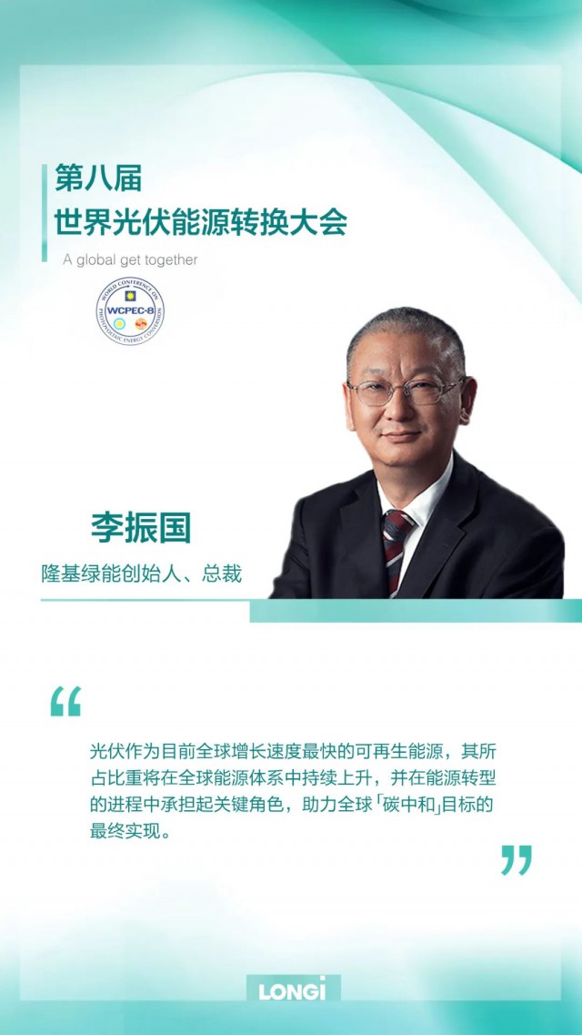 ■ 隆基綠能創(chuàng)始人、總裁李振國(guó)出席第八屆世界光伏能源轉(zhuǎn)換大會(huì)(WCPEC-8)